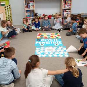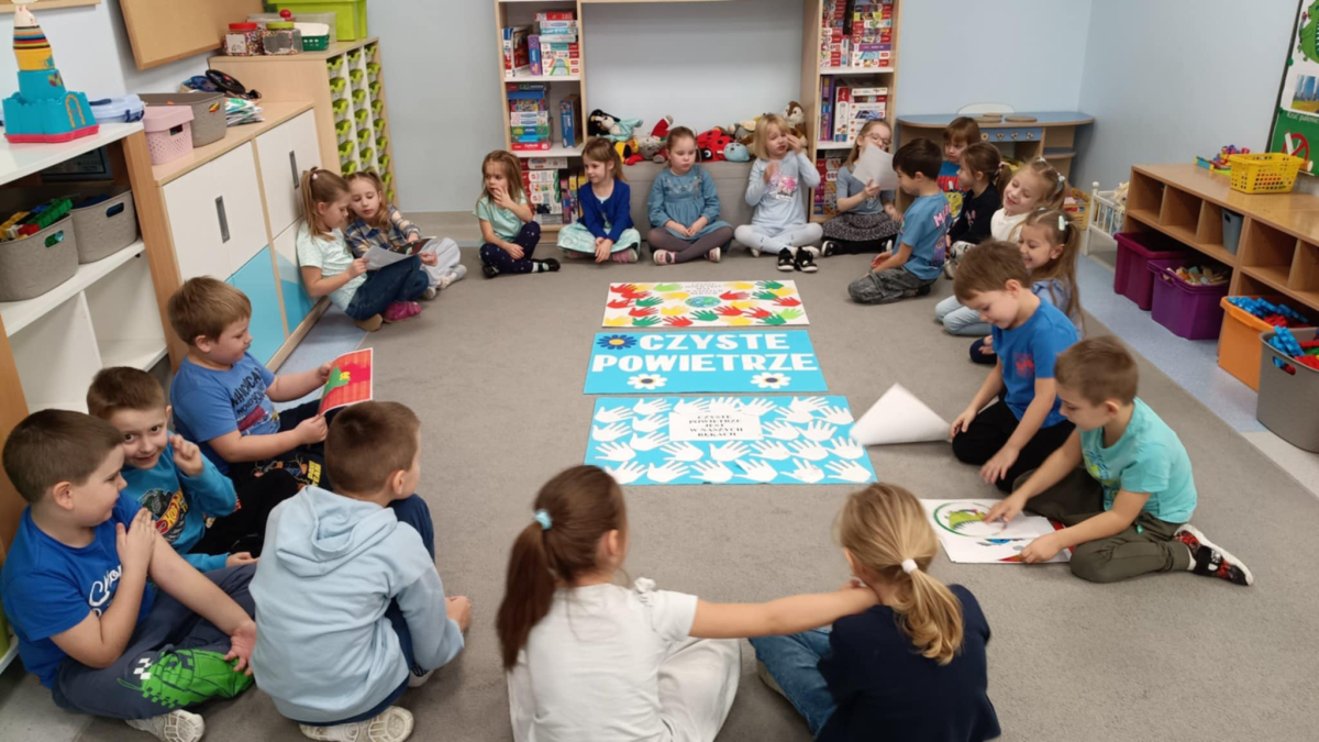 Nasze przedszkole realizuje program edukacyjny „Czyste powietrze wokół nas”, którego celem jest kształtowanie u dzieci świadomości dotyczącej ochrony powietrza oraz zagrożeń wynikających z jego zanieczyszczenia.