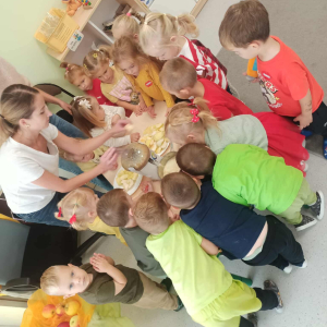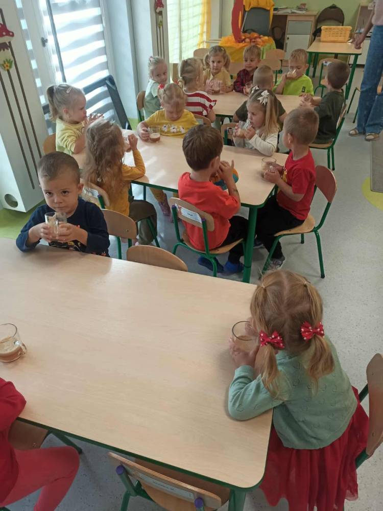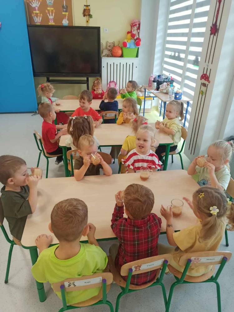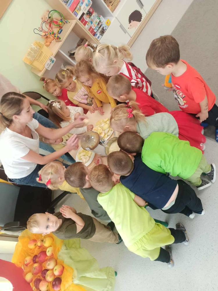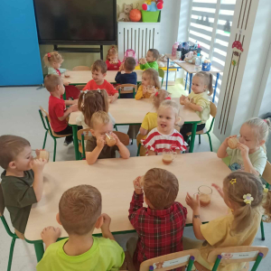 Dnia 29 września Smerfy obchodziły Światowy Dzień Jabłka. Celem zajęć i wspólnej zabawy było: zachęcenie dzieci do spożywania jabłek i ich przetworów, jako źródła witamin, uświadamianie wartości odżywczych owoców dla prawidłowego rozwoju oraz wyrabianie nawyku zdrowego odżywiania się. Dzieci robiły i piły sok z jabłek. Na podsumowanie zajęć wykonały pracę plastyczną „Jabłuszko”.