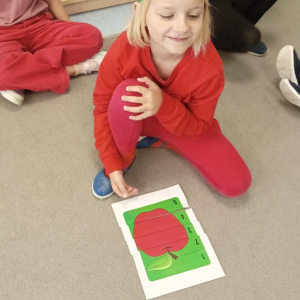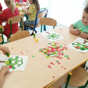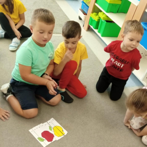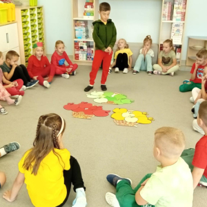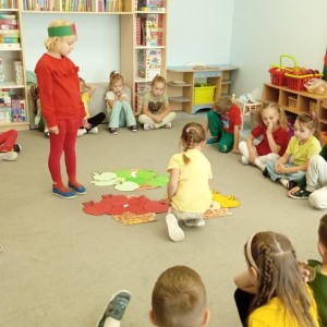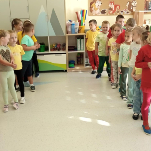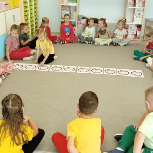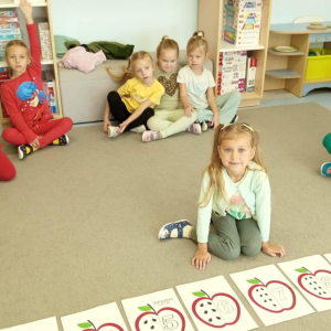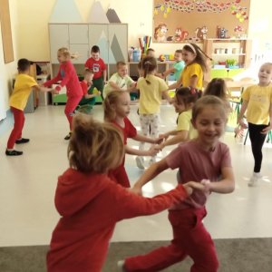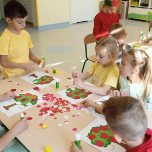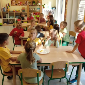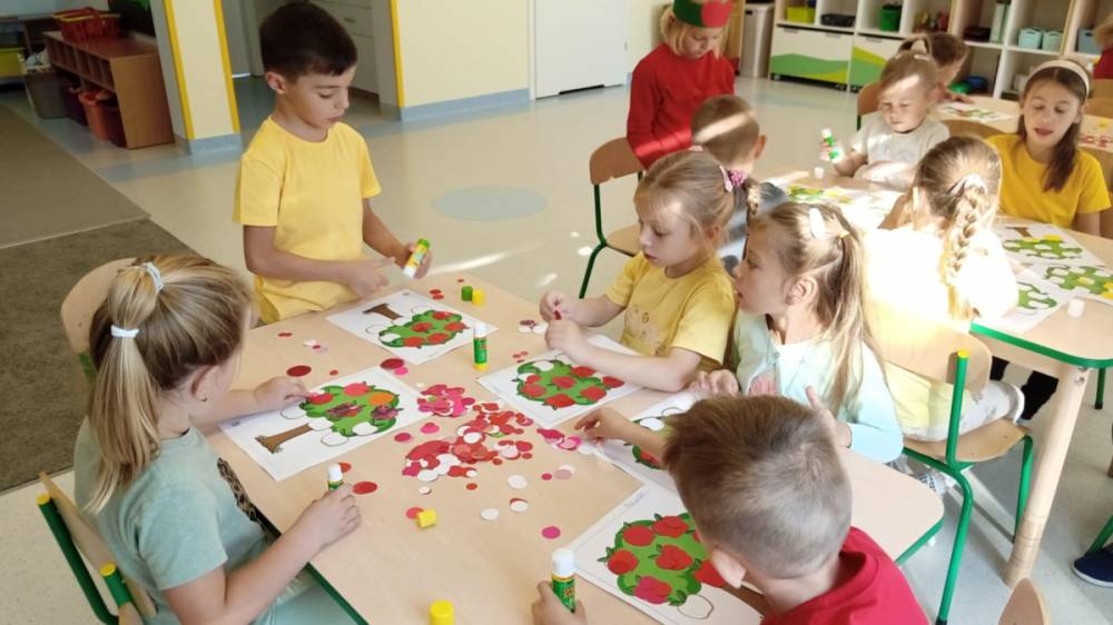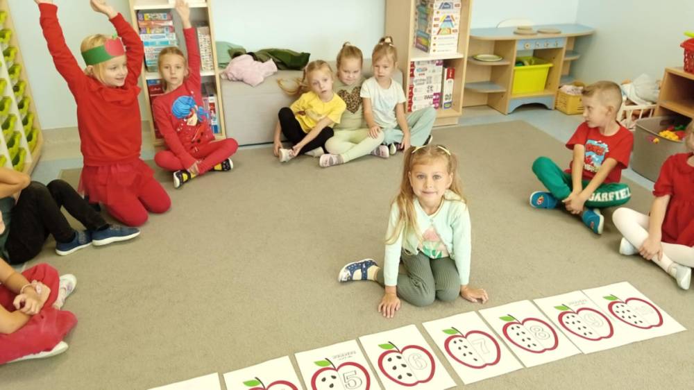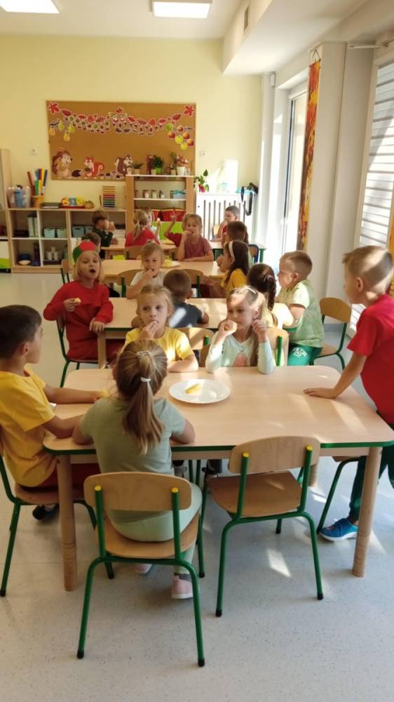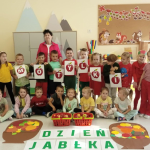 Był to wyjątkowy dzień, trochę inny niż zwykle. Dzieci poznały jabłka i ich odmiany. Chętnie rozpoznawały i określały kształt, zapach, kolor i smak. Ponadto wzbogacały swoją wiedzę z zakresu walorów zdrowotnych tych smacznych owoców. Wszystkie zabawy tego dnia dominowały pod znakiem jabłka - były piosenki, tańce, zagadki, działania matematyczne i zajęcia plastyczne. Wiele emocji dostarczyły dzieciom konkurencje zręcznościowe i ćwiczenia ruchowe.