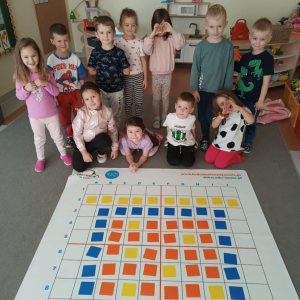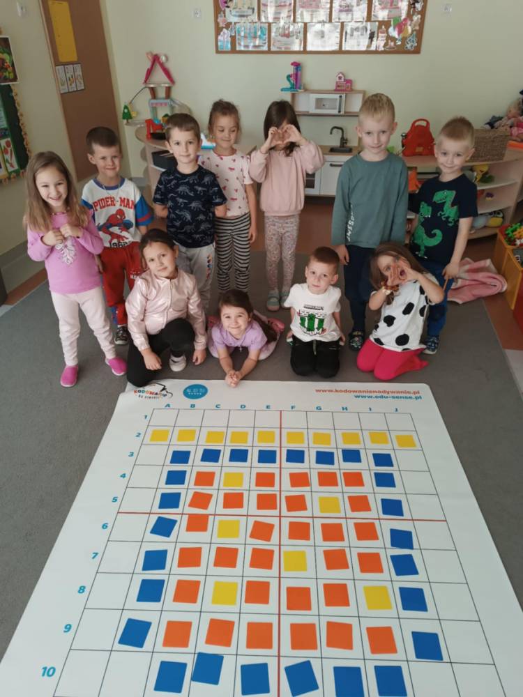 Grupa "Pszczółki" bierze udział w programie "Kodowanie na dywanie" i w październiku dzieci miały okazję zakodować liść klonu, słoik z przetworami, żołędzia oraz dynie. Dzięki kodowaniu dzieci rozwijają m.in. pamięć, uwagę i spostrzeganie.