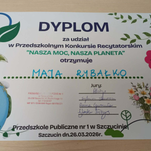 Dnia 26 marca odbył się konkurs recytatorski o tematyce ekologicznej. Uczestnicy zaprezentowali utwory poruszające ważne zagadnienia związane z ochroną środowiska, troską o naszą planetę oraz odpowiedzialnością człowieka za przyrodę.