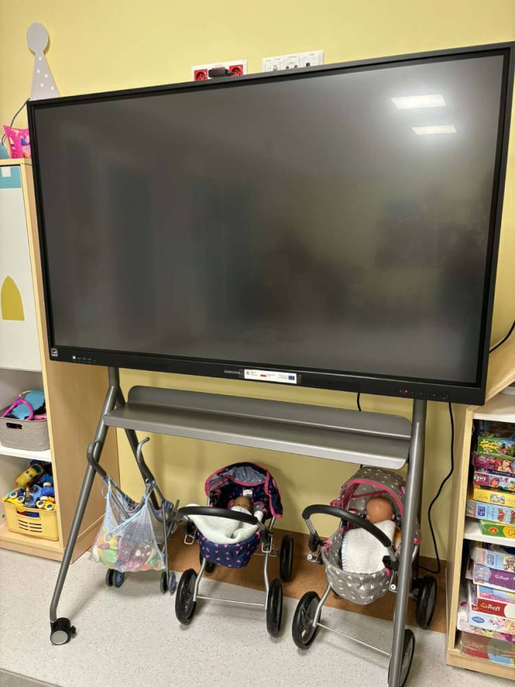 W ramach przyznanego grantu nasze przedszkole otrzymało 6366 zł, które przeznaczono na zakup nowoczesnego sprzętu wspierającego edukację. Dzięki tym środkom zakupiony został monitor interaktywny Samsung WA65F – 65 cali z pełnym wyposażeniem.