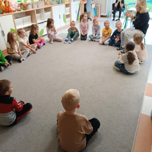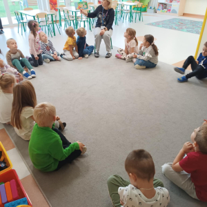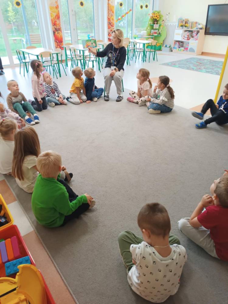 29 września grupę "Pszczółki" odwiedziła pani Ala, która przeczytała bajkę dla dzieci "Na straganie" J. Brzechwy z okazji Ogólnopolskiego Dnia Głośnego Czytania. Dzieci z zaciekawieniem słuchały bajeczki a następnie wykonały piękne zakładki do książki.