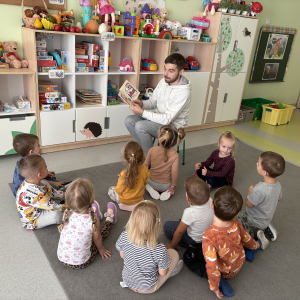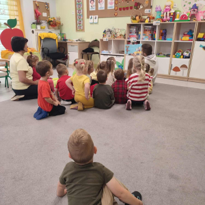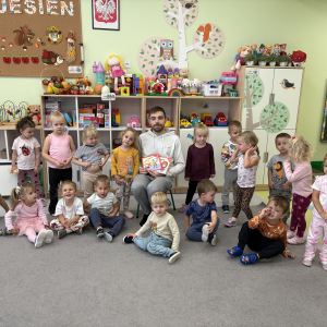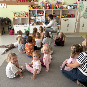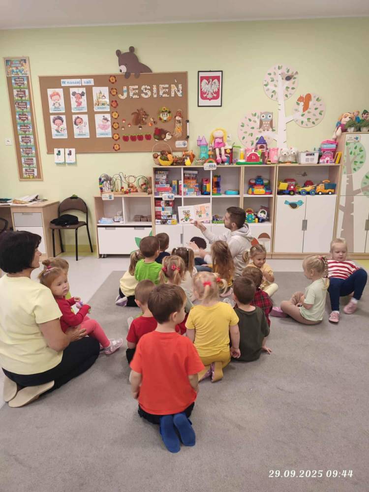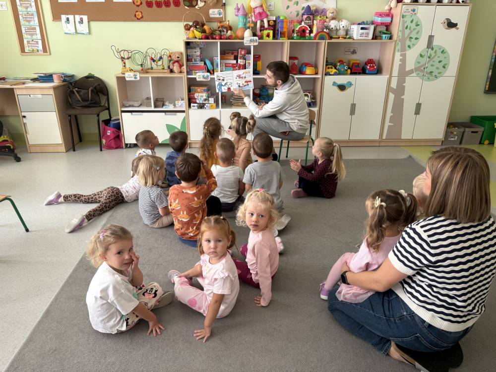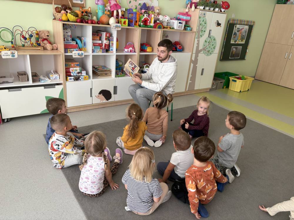 W ostatnich tygodniach grupa Smerfy miała przyjemność dwukrotnie gościć w naszym przedszkolu tatę Oliwki, który wspaniale czytał dzieciom bajki. Każde spotkanie było pełne uśmiechu, ciekawości i magicznej atmosfery.