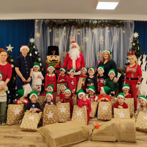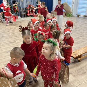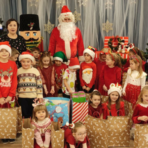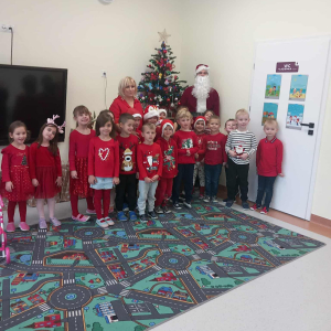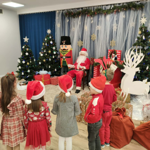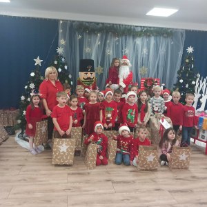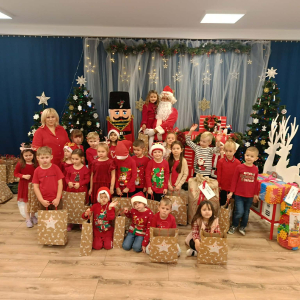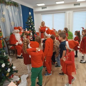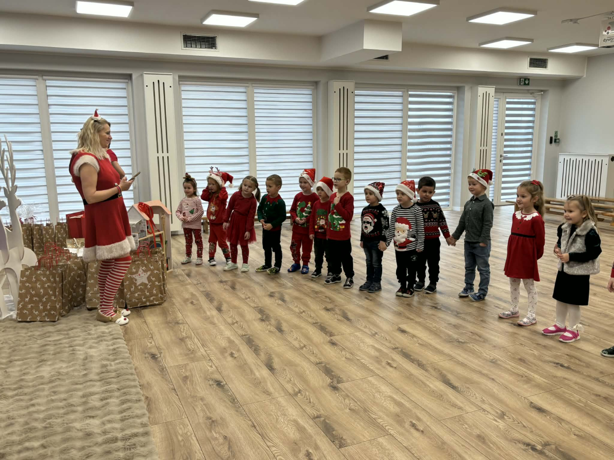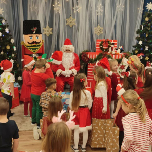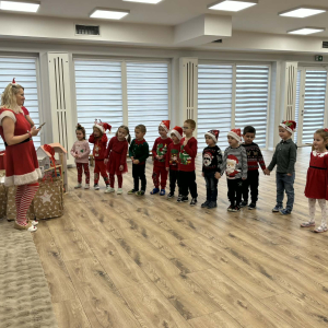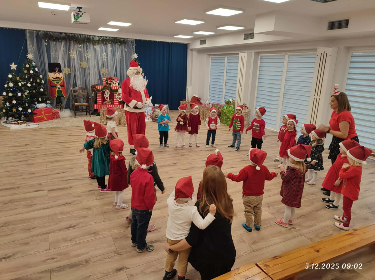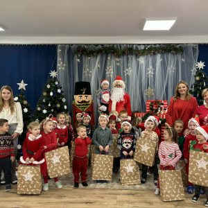 5 grudnia nasze przedszkole odwiedził Święty Mikołaj! Dzieci z ogromną radością powitały wyjątkowego gościa, śpiewały piosenki, recytowały wierszyki i z entuzjazmem odbierały drobne upominki. To był pełen uśmiechu, magii i ciepłej, świątecznej atmosfery dzień, który na długo pozostanie w pamięci przedszkolaków.