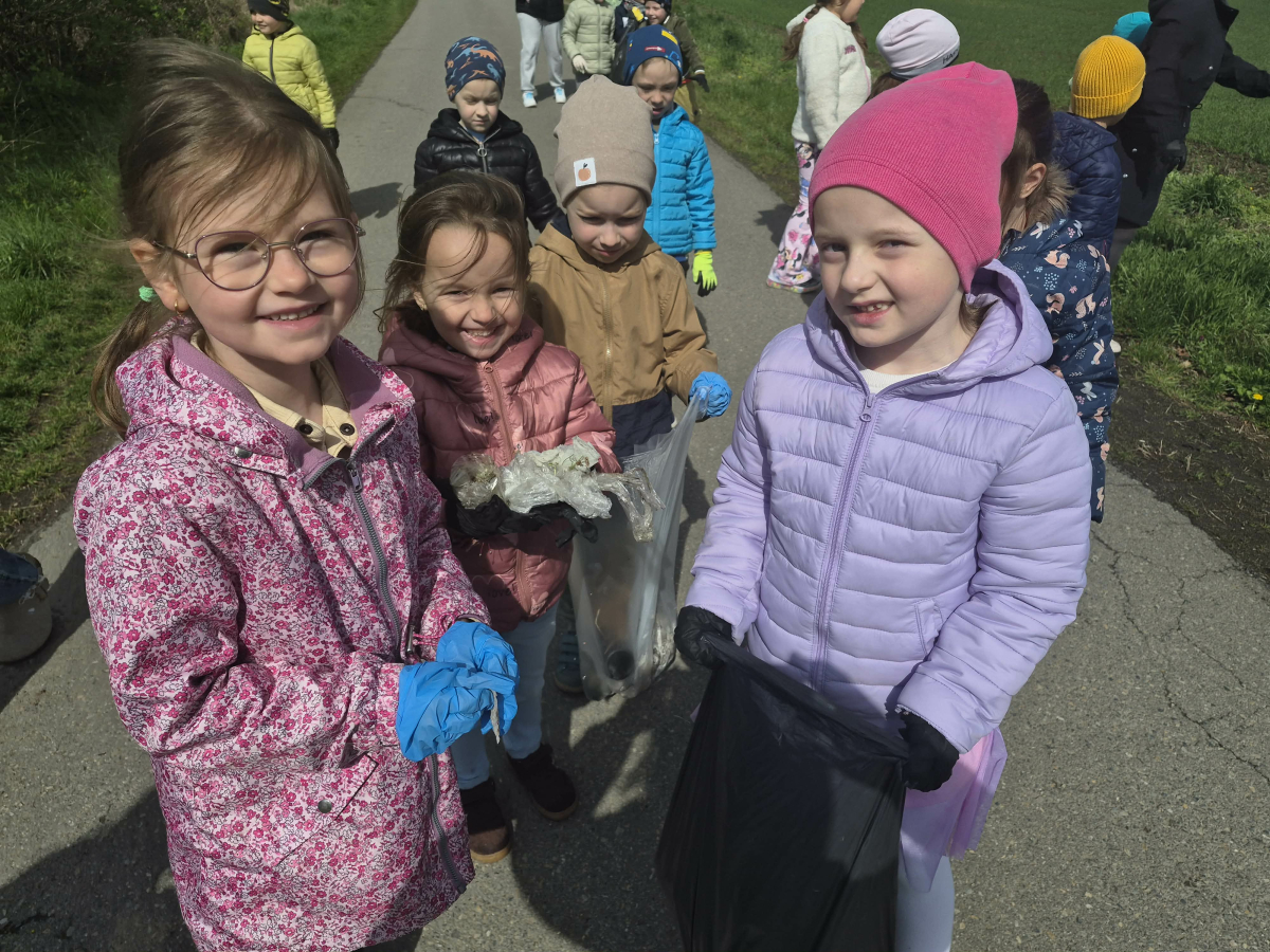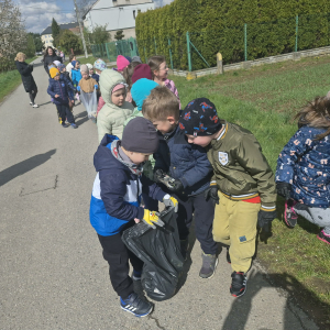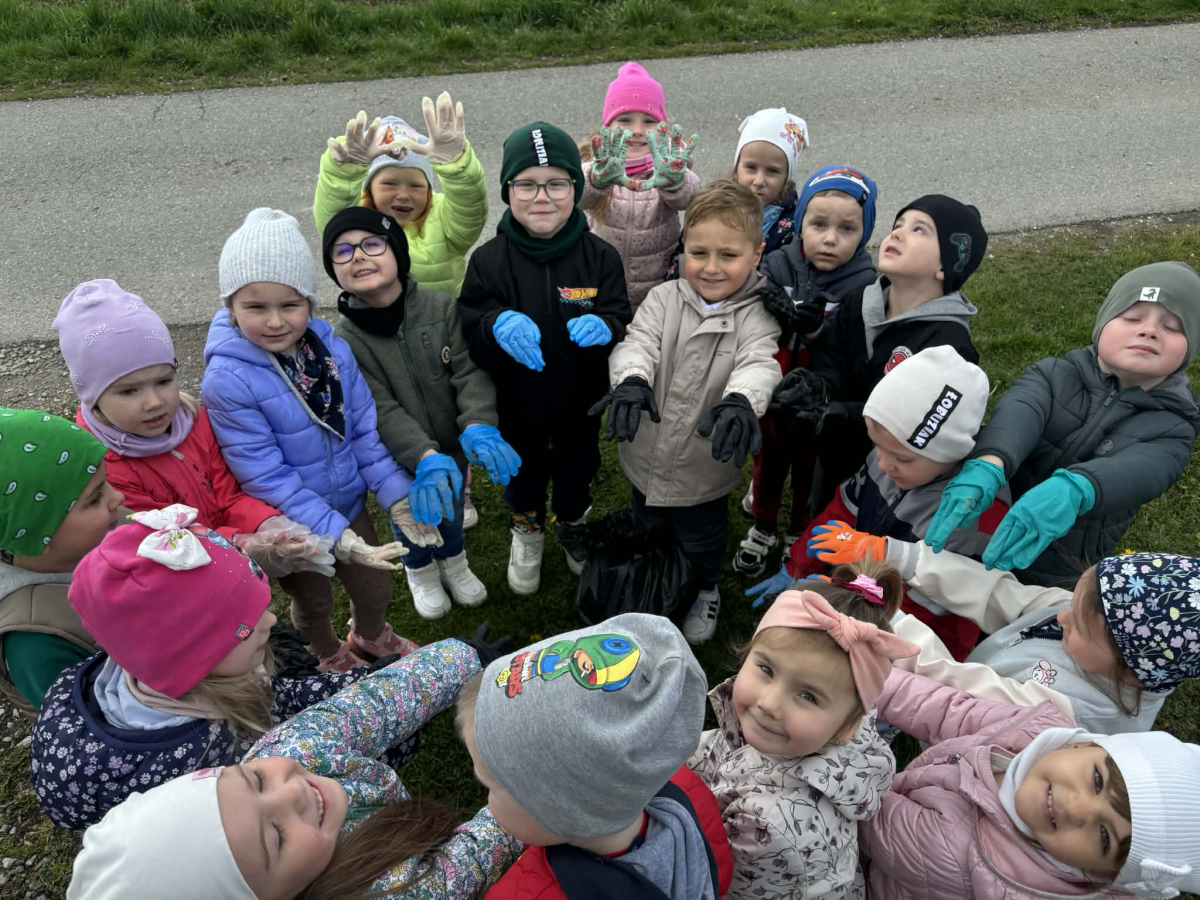 Grupa Krasnale oraz Słoneczka aktywnie wzięły udział w akcji „Sprzątanie Świata”. Dzieci z dużym zaangażowaniem porządkowały najbliższe otoczenie przedszkola, ucząc się przy tym dbałości o przyrodę i odpowiedzialności za środowisko. Wspólna praca sprawiła wszystkim wiele radości, a efektem było czystsze i piękniejsze otoczenie.