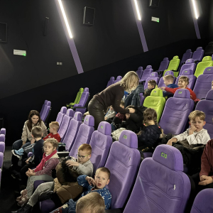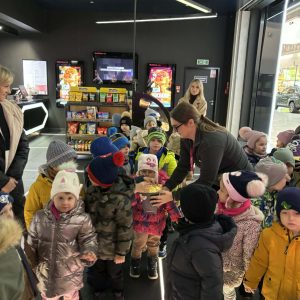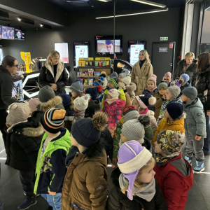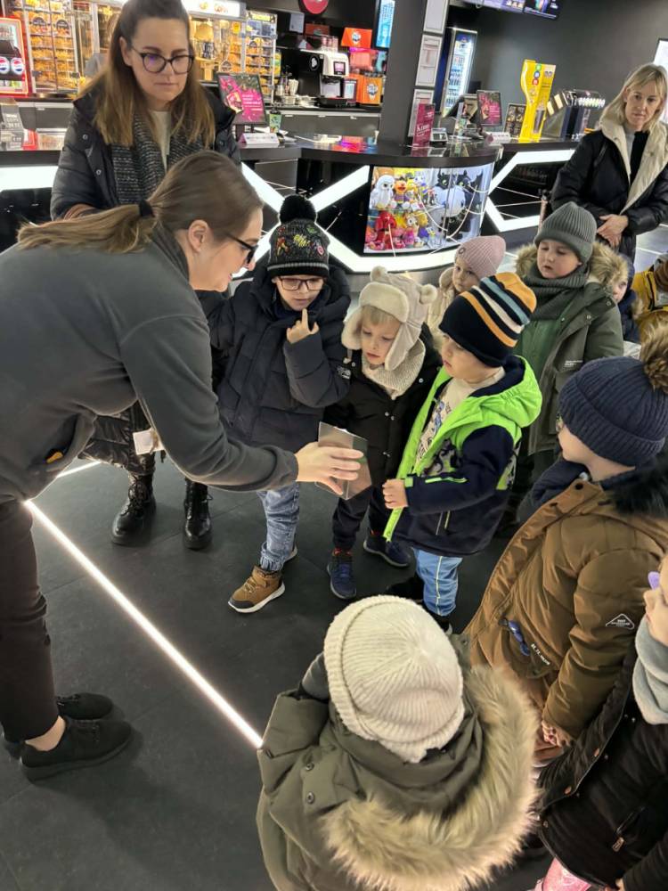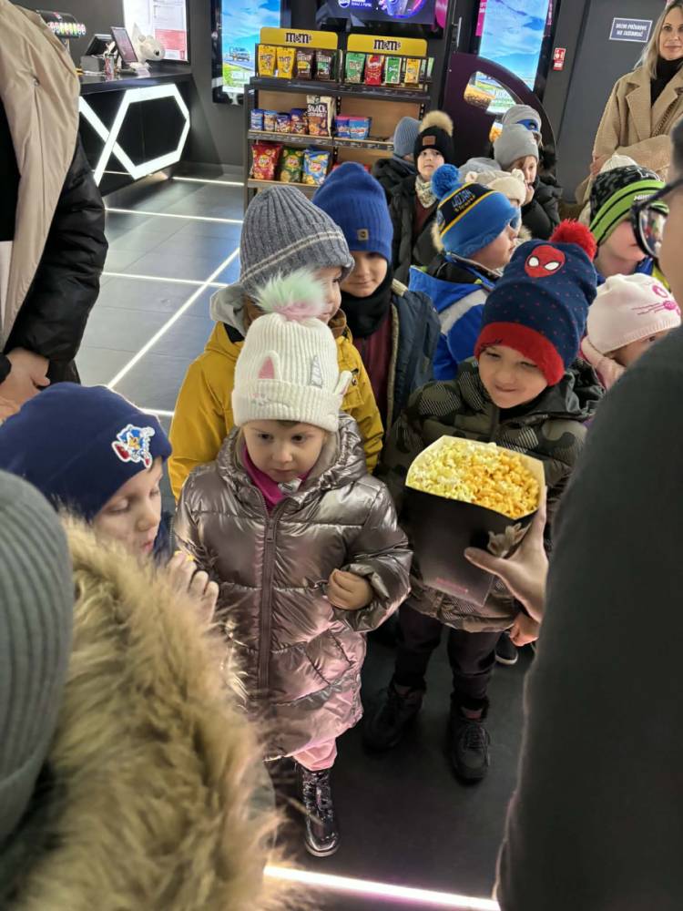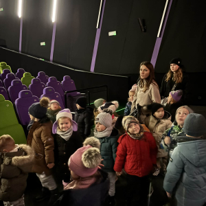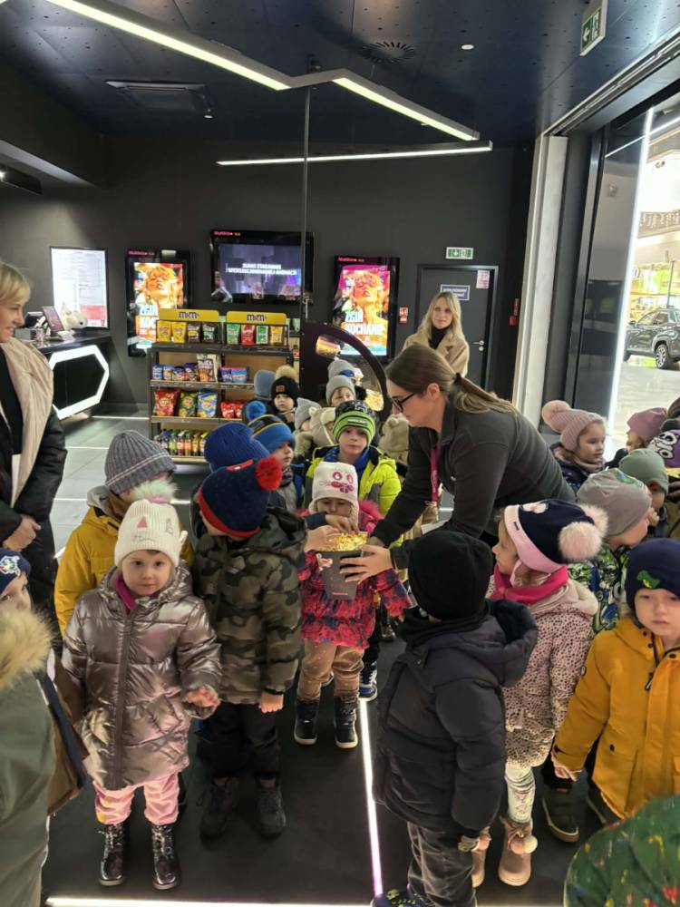 24 listopada grupy Słoneczka i Żabki wybrały się na wycieczkę do Kina Multikino w Mielcu, aby obejrzeć bajkę „Kicia Kocia pod choinkę”. Bajka wprowadziła nas powoli w zbliżający się świąteczny nastrój. Przed seansem dzieci wzięły udział w spotkaniu z panią pracującą w kinie, zatytułowanym „Moja pierwsza wizyta w kinie”. Podczas zajęć dzieci: próbowały różnych rodzajów popcornu, odwiedziły różne sale kinowe, dowiedziały się, jak kupować bilety, a także nauczyły się, jak należy zachowywać się w kinie. Dla wielu była to pierwsza wizyta w kinie, pełna ciekawych wrażeń i nowych doświadczeń. Dzieci wróciły do przedszkola bardzo zadowolone.
