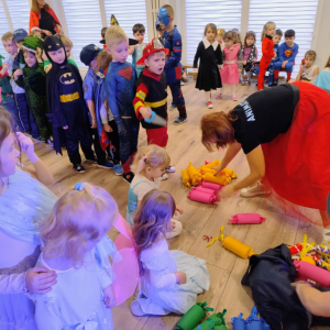 Za nami wyjątkowa zabawa choinkowa, w której udział wzięły nasze wspaniałe przedszkolaki. Tego dnia sala wypełniła się śmiechem, muzyką i kolorami, a dzieci zachwycały pięknymi, bajkowymi strojami. Animatorzy zadbali o mnóstwo atrakcji – były tańce, zabawy ruchowe, konkursy oraz wspólne animacje, które dostarczyły dzieciom wiele radości i niezapomnianych wrażeń.To był czas pełen dobrej zabawy i dziecięcej beztroski.