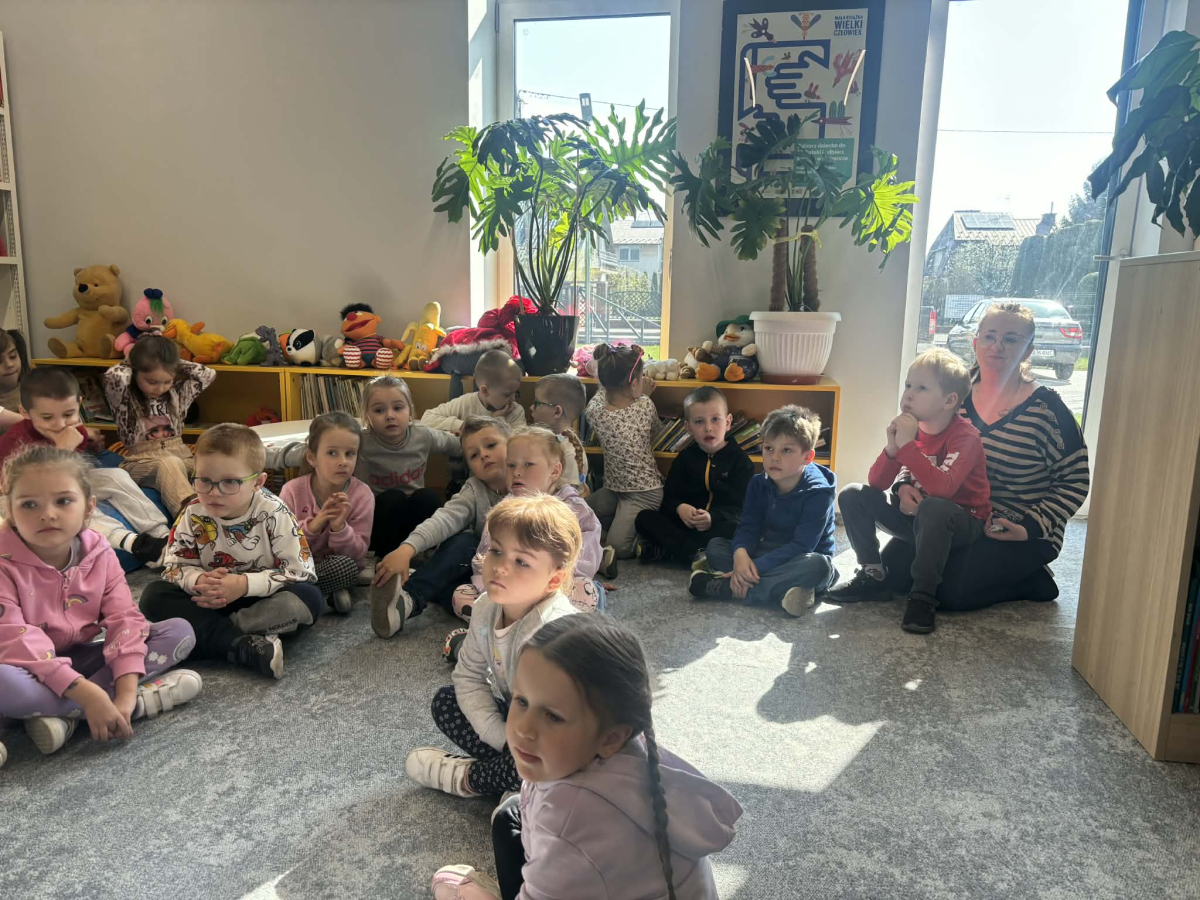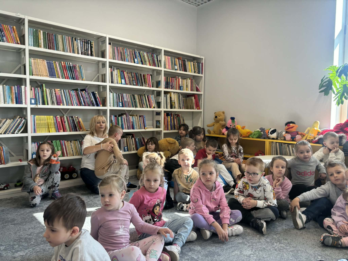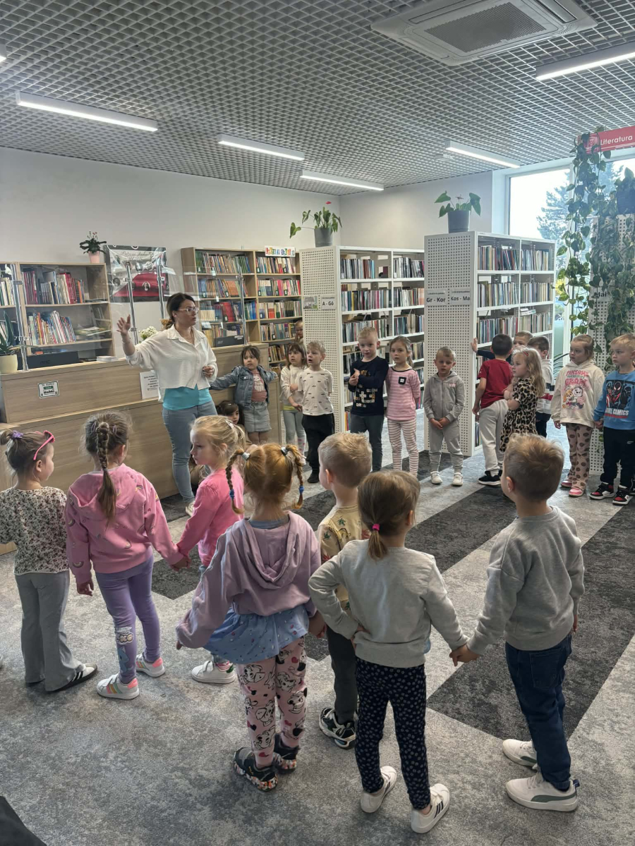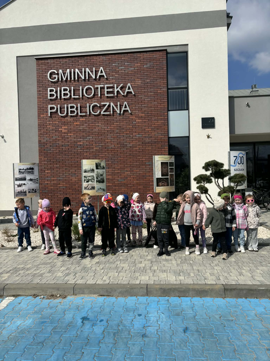 7 kwietnia dzieci z grup Słoneczka i Pszczółki w ramach zajęć dydaktycznych wybrały się na wycieczkę do Biblioteka w Szczucinie. Wizyta odbyła się w związku z realizowanym w tym tygodniu blokiem tematycznym poświęconym książkom. Podczas spotkania dzieci z zainteresowaniem wysłuchały bajki, dzięki której dowiedziały się, co należy zrobić w sytuacji zagubienia wypożyczonej książki. Następnie zwiedziły bibliotekę, poznały jej zasady funkcjonowania oraz obejrzały księgozbiór przeznaczony dla najmłodszych czytelników. Kolejnym punktem wyjścia było zwiedzanie budynku SCKiB w Szczucinie, co pozwoliło dzieciom poznać ważne miejsce na mapie naszej miejscowości i dowiedzieć się, jakie wydarzenia kulturalne są tam organizowane. Wyjście było bardzo udane – dzieci wróciły bogatsze o nowe doświadczenia, wiedzę i inspiracje do sięgania po książki. Dziękujemy pracownikom biblioteki za ciepłe przyjęcie i ciekawe zajęcia!