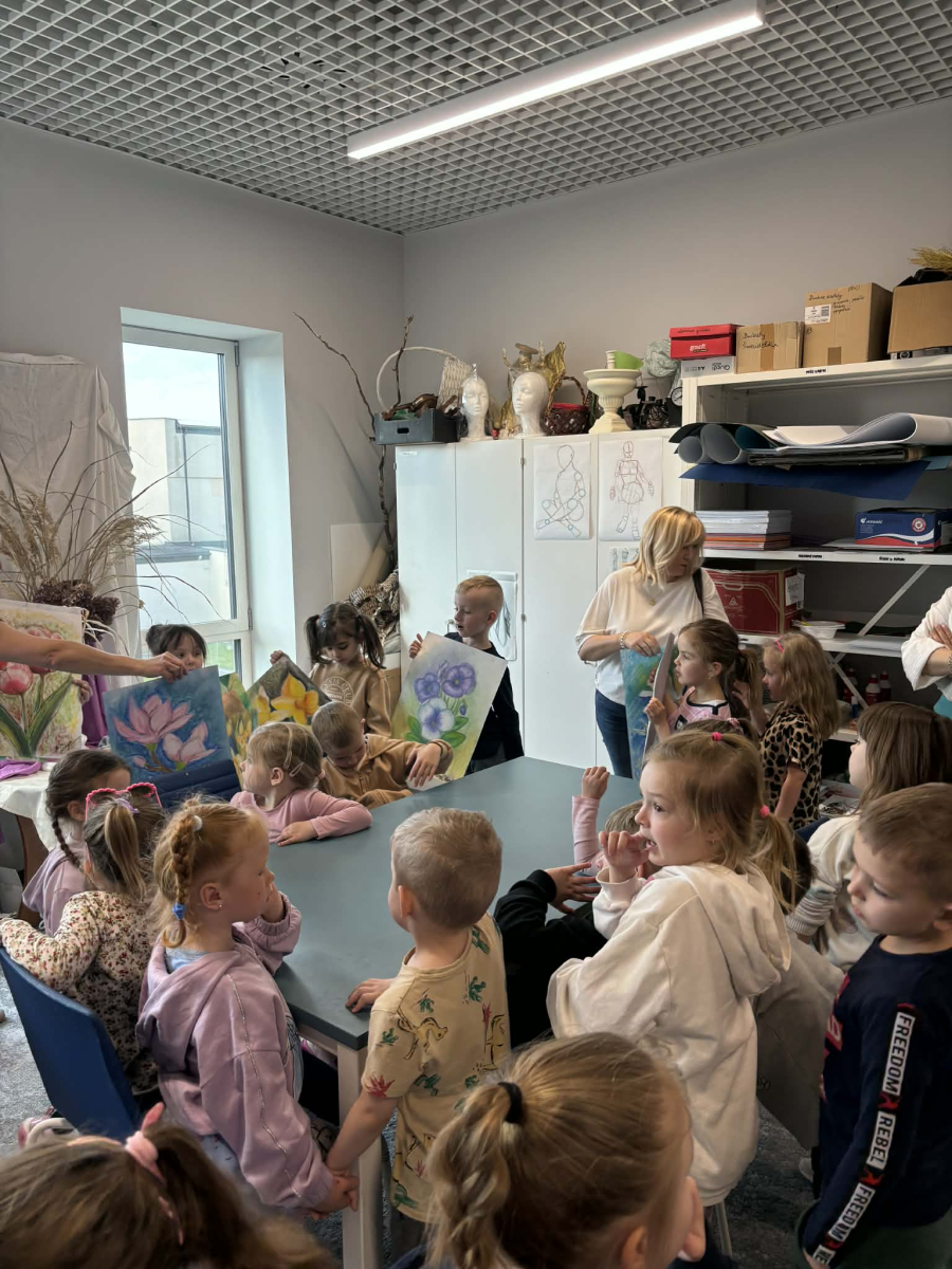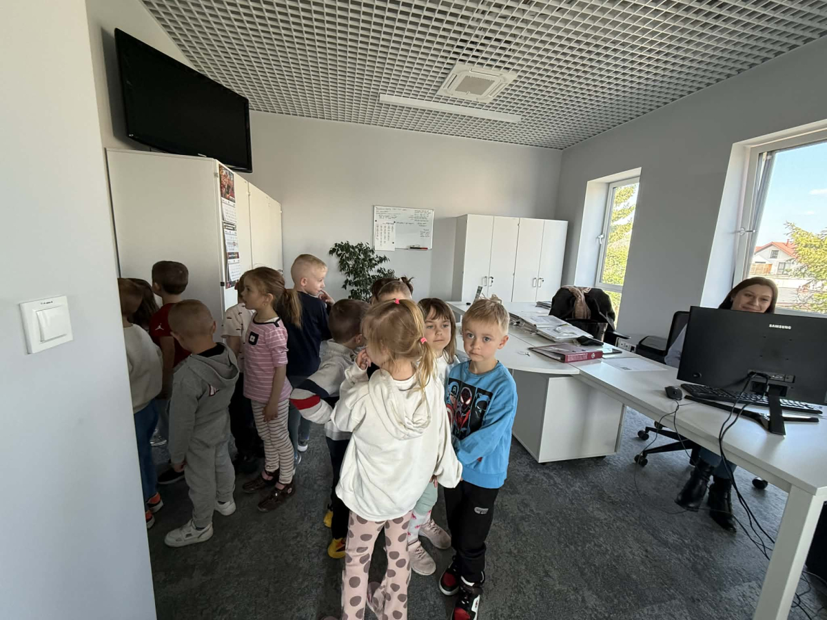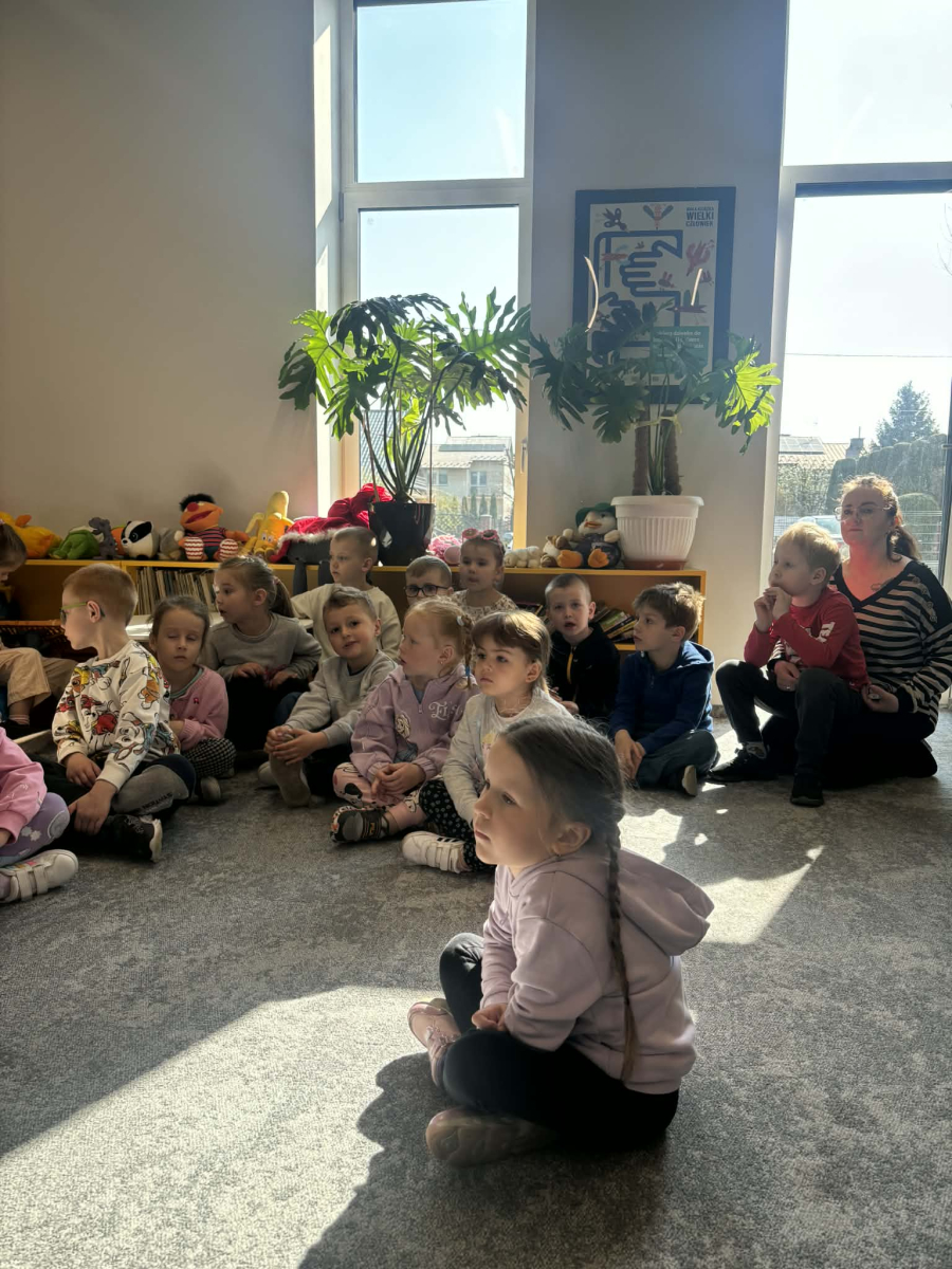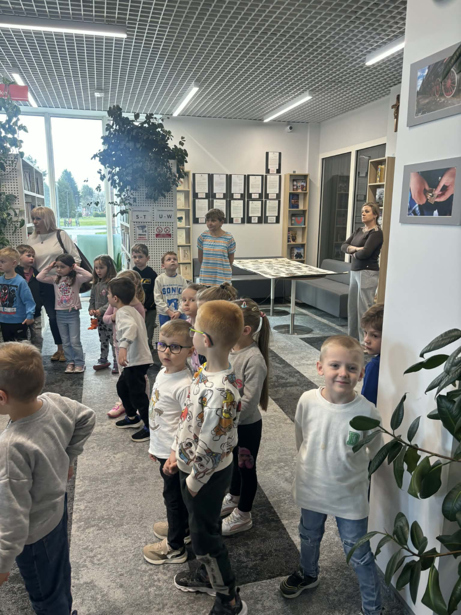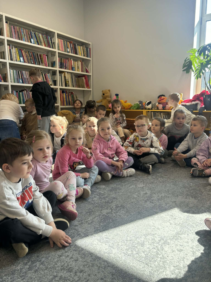 7 kwietnia dzieci z grup Słoneczka i Pszczółki w ramach zajęć dydaktycznych wybrały się na wycieczkę do Biblioteka w Szczucinie. Wizyta odbyła się w związku z realizowanym w tym tygodniu blokiem tematycznym poświęconym książkom. Podczas spotkania dzieci z zainteresowaniem wysłuchały bajki, dzięki której dowiedziały się, co należy zrobić w sytuacji zagubienia wypożyczonej książki. Następnie zwiedziły bibliotekę, poznały jej zasady funkcjonowania oraz obejrzały księgozbiór przeznaczony dla najmłodszych czytelników. Kolejnym punktem wyjścia było zwiedzanie budynku SCKiB w Szczucinie, co pozwoliło dzieciom poznać ważne miejsce na mapie naszej miejscowości i dowiedzieć się, jakie wydarzenia kulturalne są tam organizowane. Wyjście było bardzo udane – dzieci wróciły bogatsze o nowe doświadczenia, wiedzę i inspiracje do sięgania po książki. Dziękujemy pracownikom biblioteki za ciepłe przyjęcie i ciekawe zajęcia!