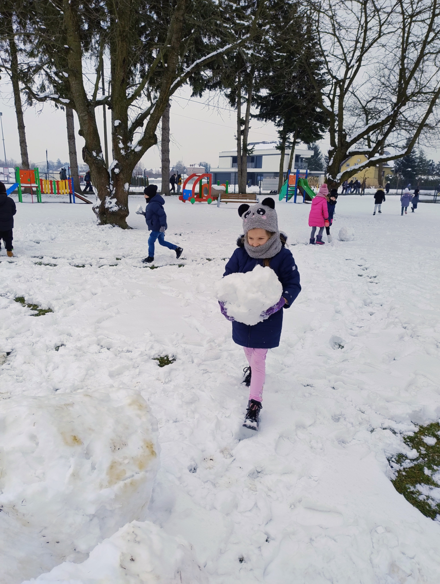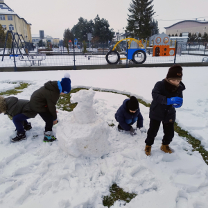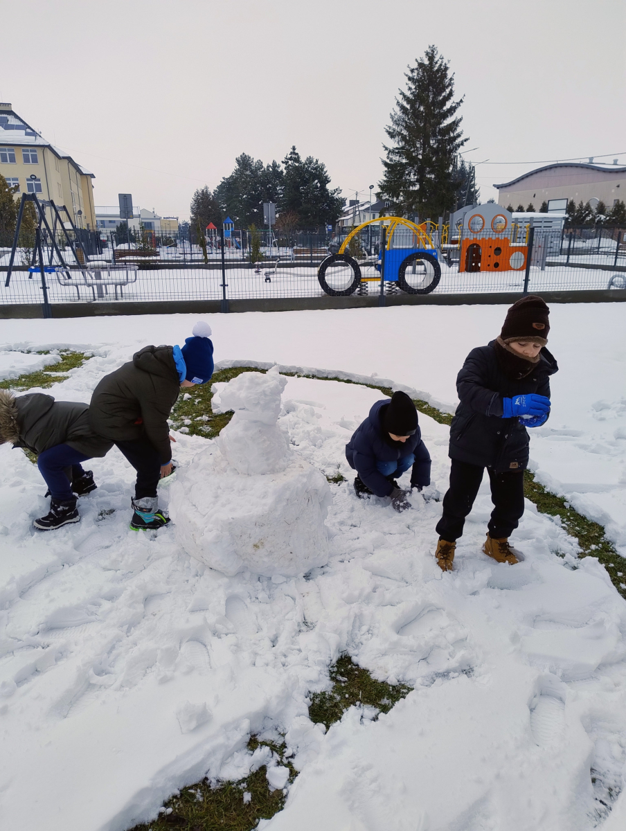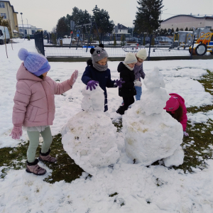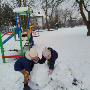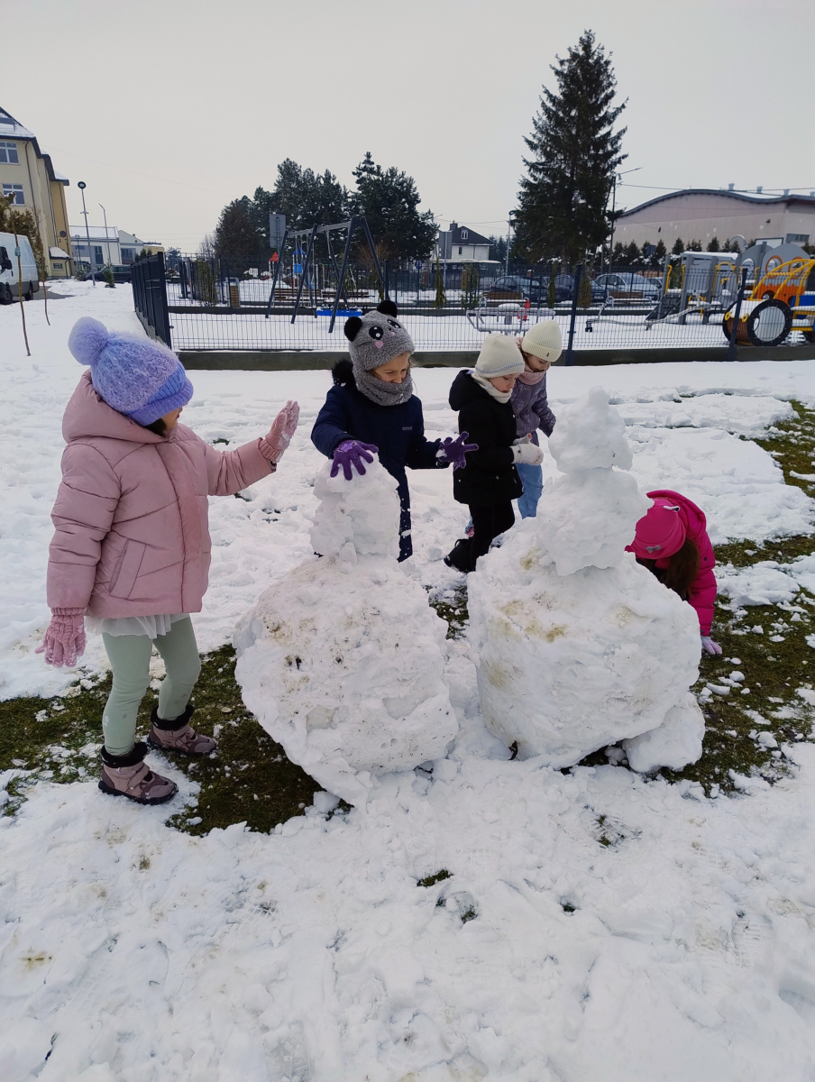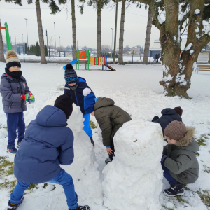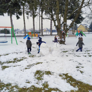 Korzystając z uroków zimy, spędzamy czas na świeżym powietrzu, ciesząc się białym puchem i wspólną aktywnością. Dzieci lepią bałwany, budują śnieżne fortece. Nie brakuje wspólnych spacerów po zimowym ogrodzie przedszkolnym.