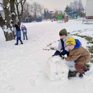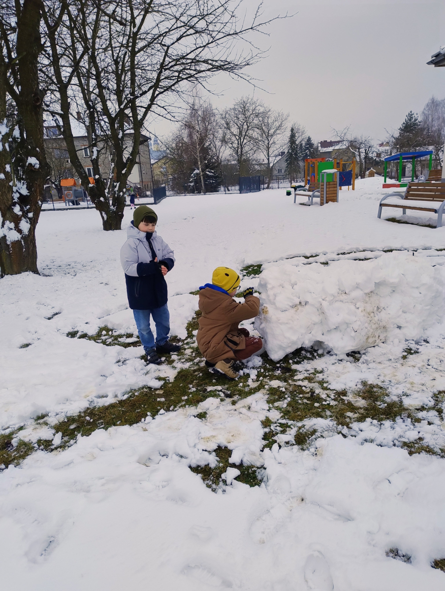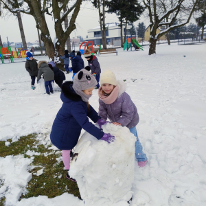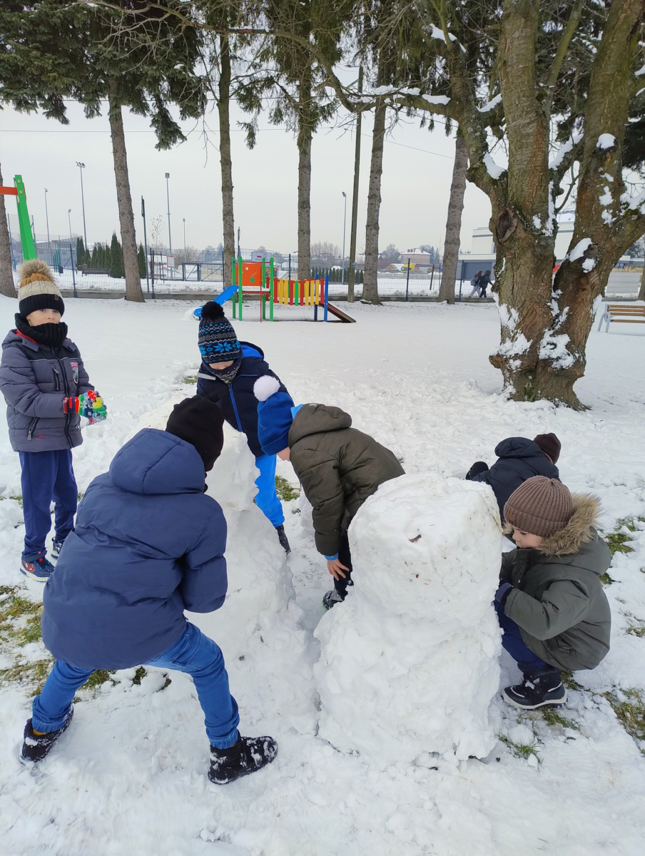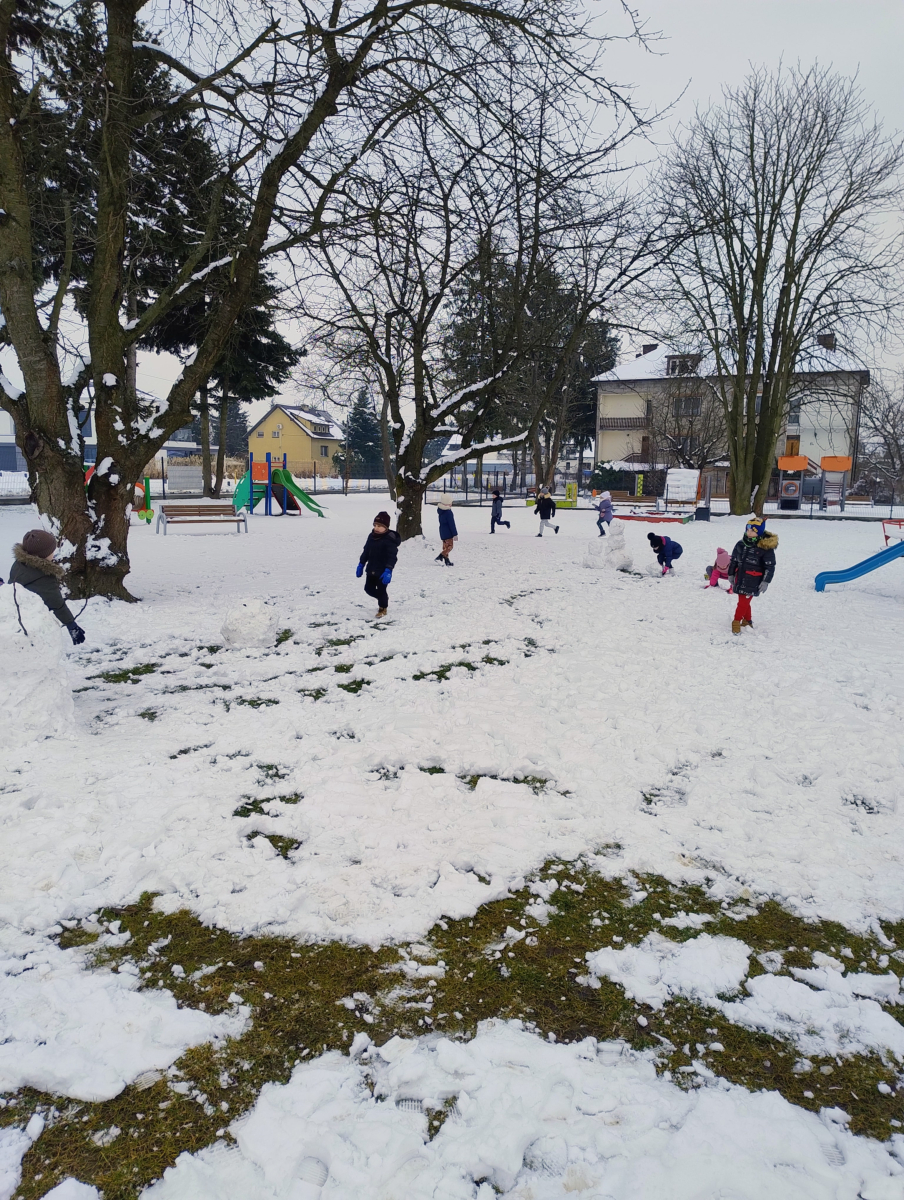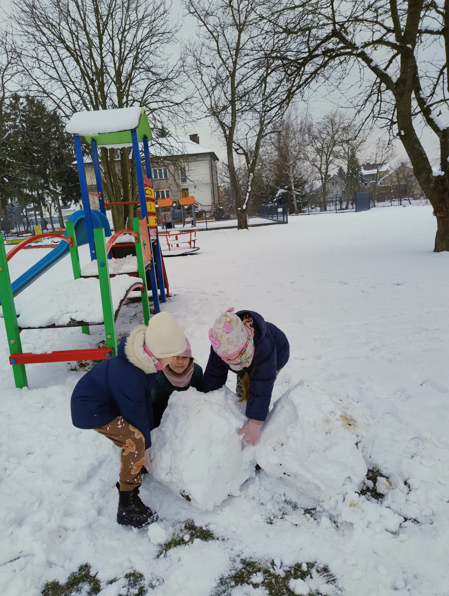 Korzystając z uroków zimy, spędzamy czas na świeżym powietrzu, ciesząc się białym puchem i wspólną aktywnością. Dzieci lepią bałwany, budują śnieżne fortece. Nie brakuje wspólnych spacerów po zimowym ogrodzie przedszkolnym.